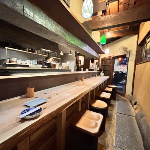 The interior was designed to resemble an old Japanese house, creating a warm and comfortable space.Please enjoy your meal at your leisure in the atmospheric counter seats.